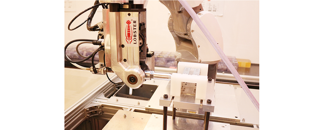 ロブテックスは20年以上前から「オートリベッティングユニット」として自動化提案を展開。直交ロボット、専用機などで実績を重ねてきた。2010年以降、需要の高まりを受けて、メニューを拡大。多関節ロボットに組み込むヘッドユニット「ARU211M」のほか、協働ロボットに縦型エアリベッターを装着させたり、さらにポカヨケ防止機能を追加させたりしている。