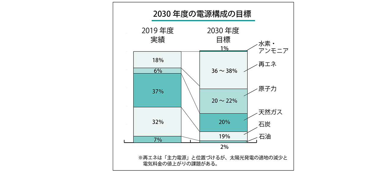 政府が昨年10月に閣議決定した新たなエネルギー基本計画は、2030年度に再生可能エネルギーの割合を発電量全体の「36〜38%」(19年度実績の倍増)に引き上げた。菅前首相が一昨年秋、50年までに温室効果ガスの排出量を実質ゼロにする目標を宣言した以上、通過点ではあるがなんとしても実現させねばならない。
