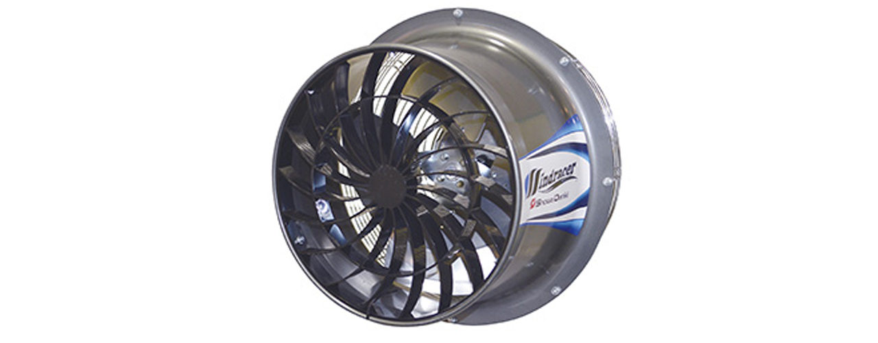 本体内部の風の抵抗になる要素を減らすことで、元々省エネだったルーフファンからさらに26〜49%の消費電力低減を実現。従来機種比1〜9dBの静音化にも成功した。昨年にはファン径105cmの大型機種も発売。従来のルーフファンとファン径が同じなら本体を乗せ換えでき、他社製品との交換も容易という。