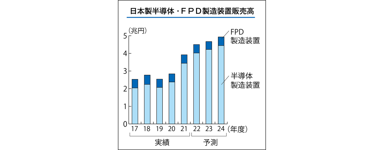 日本製半導体製造装置の販売額はついに4兆円を超えそうだ。(一社)日本半導体製造装置協会(SEAJ)が7月7日まとめた需要予測によると、22年度の販売額は前年度比17.0%増の4兆283億円になるという。ウクライナ紛争の長期化やインフレ加速による個人消費への影響、サプライチェーンの混乱と部品不足は続いているものの、「大手ロジック・ファウンドリー、メモリーをはじめとした積極的な投資姿勢は維持されている」とし、2022年1月の予測額よりも5千億円弱上積みした。