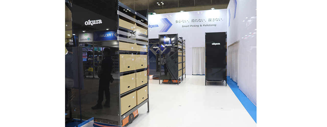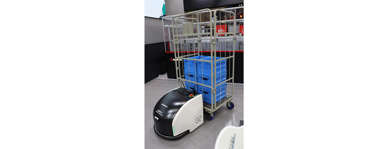 オカムラはAutoStoreとともにカゴ車をコンパクトに運べる自律移動ロボ「ORV」を出展