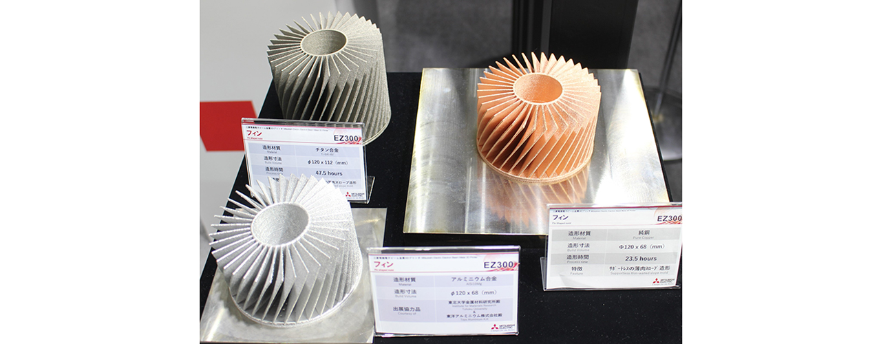 AMについてはレーザー方式だけでなく電子ビーム方式も登場している。電子顕微鏡で培った電子ビーム制御技術を応用し、日本電子は「JAM-5200EBM」を開発。三菱電機はTRAFAM(技術研究組合次世代3D積層造形技術総合開発機構)の成果でもある「EZ300」をアピールする。三菱電機によると同社の電子ビーム式AMはまだ数台の納入にとどまるが、ビームの吸収率が高いという特長があるため、レーザー方式が苦手とする粉末材である純銅やチタン、アルミニウムなどが扱えるという。