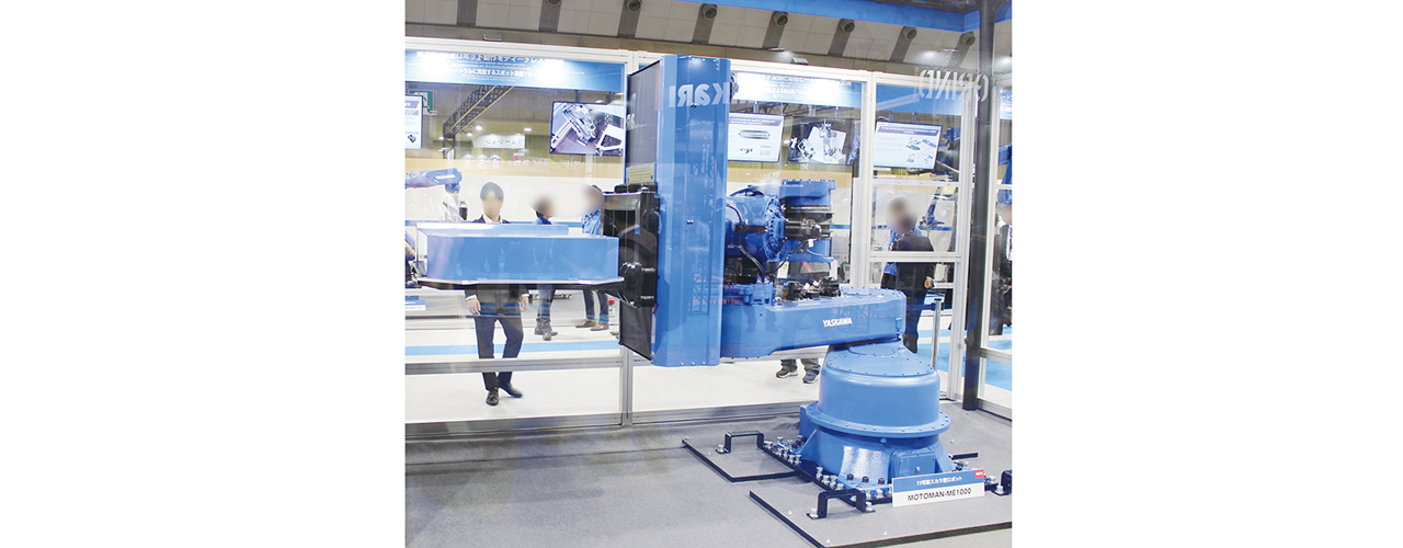 産業用ロボットの可搬質量が増している。EV用バッテリーやギガキャスト成形品の搬送を想定してのことだろう。安川電機が開発した実に1t可搬のスカラロボット「MOTOMAN-ME1000」は巨大なフォークリフトを想起させる。やみくもに大きくしたわけではない。同社のスカラ型は数kg可搬にとどまっていたが、EVバッテリーの搬送向けに開発を進めたところ、省エネ性(同クラス機に比べモーター容量を60%削減)や省スペース・小型化(設置面積と本体質量を40%低減)を考慮するとこのタイプにたどり着いたという。