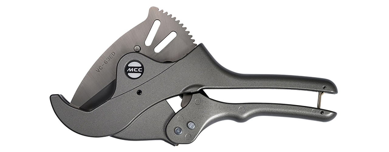 硬質ポリ塩ビ管、ポリエチレン管、ポリブテン管などの片手切断に対応。外径φ48mmまでを対象としたコンパクトな「VC-0348A」、外径φ63mmまで切断できる「VC-0363A」の2種類をラインアップしている。