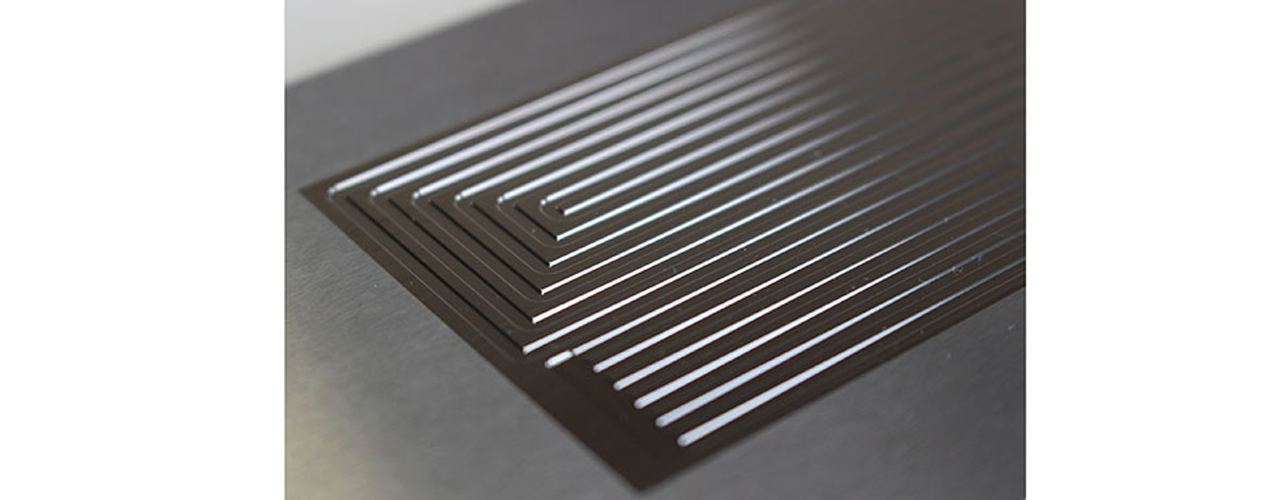 金型メーカーの東京鋲螺工機(埼玉県新座市)が直彫りで試作した燃料電池セパレータ金型(超硬合金〈HRC81〉、106×56mmサイズ〈実物の約8分の1〉)