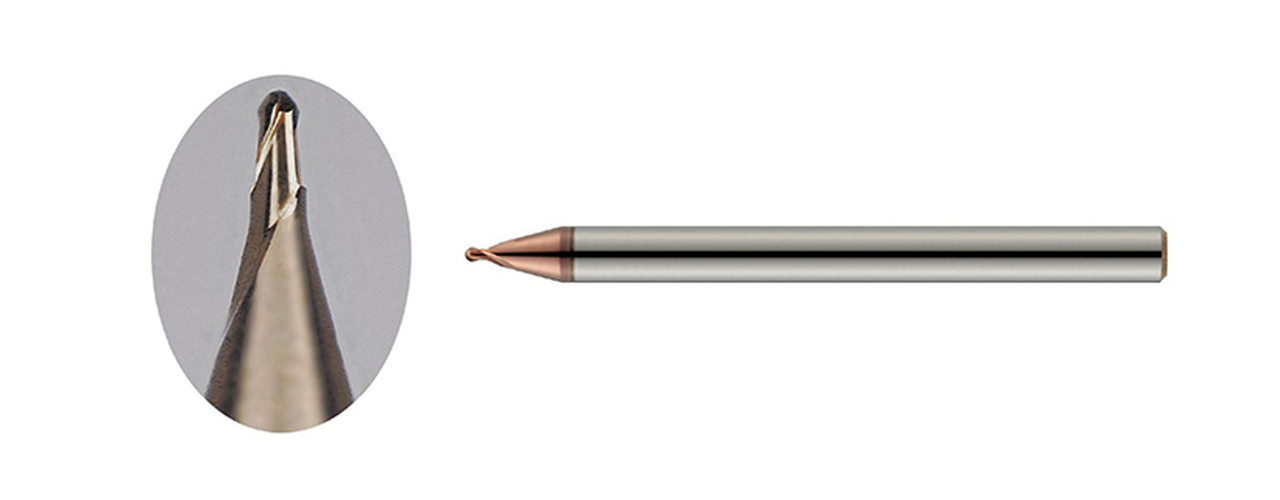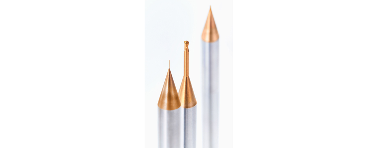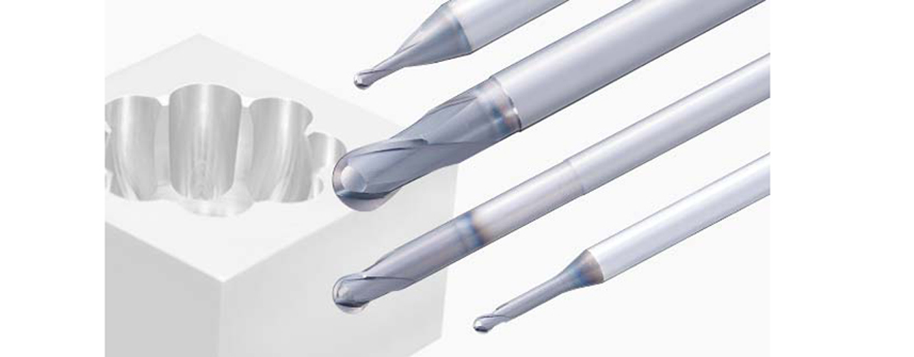 細・精密加工領域をターゲット分野とする切削工具メーカー各社の製品を見てみる。京セラにはこの分野で同社第1弾製品として昨秋発売したソリッドボールエンドミル「2KMB」がある。培ったPVDコーティング技術とユニークな形状を組み合わせたもので、「半導体需要の増加や電子部品の小型化、燃料電池車に必要な燃料セパレータなど、これまで以上に精密な金型加工(高硬度材)が必要になってきている」とする。2KMBは調質鋼から70HRCの焼入れ鋼までに対応し、微細加工で長寿命・安定加工の両立を可能にするという。