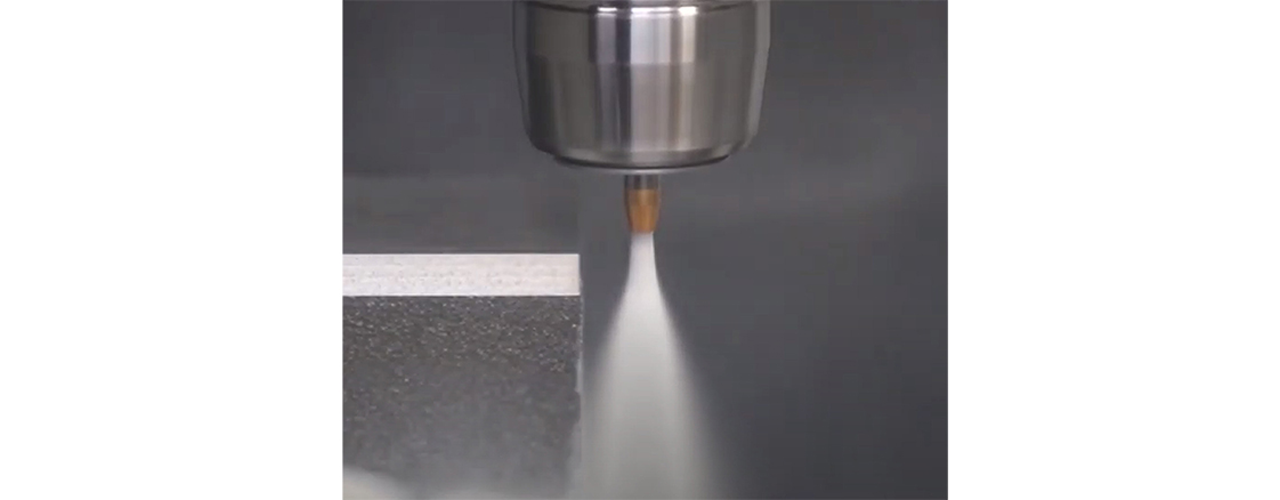 ムラキはDIXI COOL(クーラント)と小径エンドミルを組み合わ組み合わせる(写真は刃先がクーラントに隠れている)