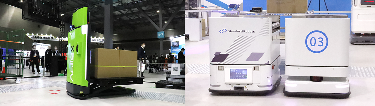 とはいえ展示内容は感染症の影響を多少とも受けたようで、自動倉庫など大型設備の展示は今回展ではほとんど見られない印象でした。しかし、その穴を埋めるかのように数を増やしたのが、国内外のメーカーによるAGV・AGF(自動走行フォークリフト)の展示ブース。なかでも、自律走行可能なAMR(autonomous mobile robot)は出展数も多く、インテリジェントな搬送ロボが来場者の大きな関心を集めていました。