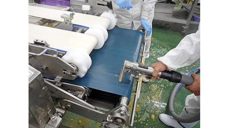 【画像3】蔵王産業は食品工場のベルトコンベアを温水洗浄してバキュームする提案も展開中