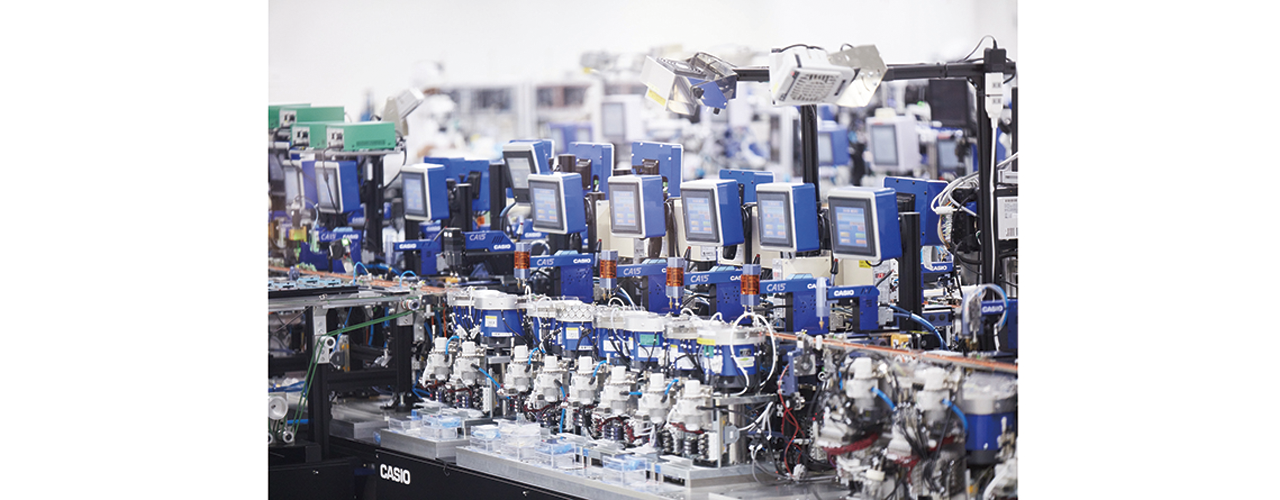 「カシオ計算機は様々な生産改革を進めており、開発側でPLM(プロダクト・ライフサイクル・マネジメント)改革、調達側ではSCM(サプライチェーン・マネジメント)改革を行っています。生産を担う当社はスマートファクトリーに力を入れています。デジタル化によって業務プロセスを改革してQCD(品質・コスト・納期)を向上し、発展・継続する工場を目指しているということです。これは全社の組織を横断するかたちで取り組んでいます。個々の組織で改革しても効果は表れにくいですから」