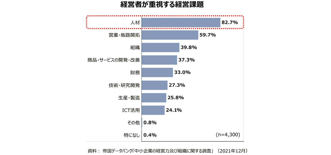 まず経営者の経営課題として「人材」が圧倒的に重視されていることを調査結果から引き、人材の能力開発に積極的な企業・職場ほど従業員の働く意欲が高い、また計画的なOJT研修・OFF-JT研修を行っている企業ほど売上高増加率が高い傾向―といった現実を分析した。このくだりでは、従業員だけではなく、経営者が学習時間を意図的に確保している企業のほうが売上高増加率の水準が高い傾向というユニークな調査結果も引用している。白書は、研修を充実させることで従業員が工夫をし、従業員が新規事業を発案するなどして業績を急回復させた事例を掲載した。