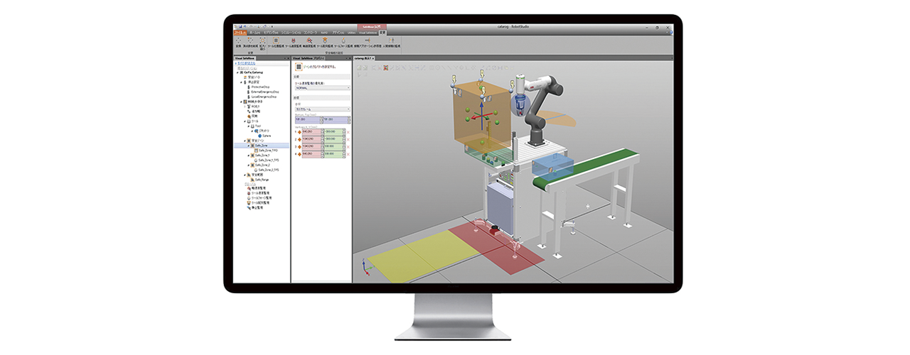 シミュレーションソフトとデジタルツインを組み合わせたABBの「ロボットスタジオ」。バーチャルリスクアセスメントで新協働ロボットGoFaの能力を引き出す