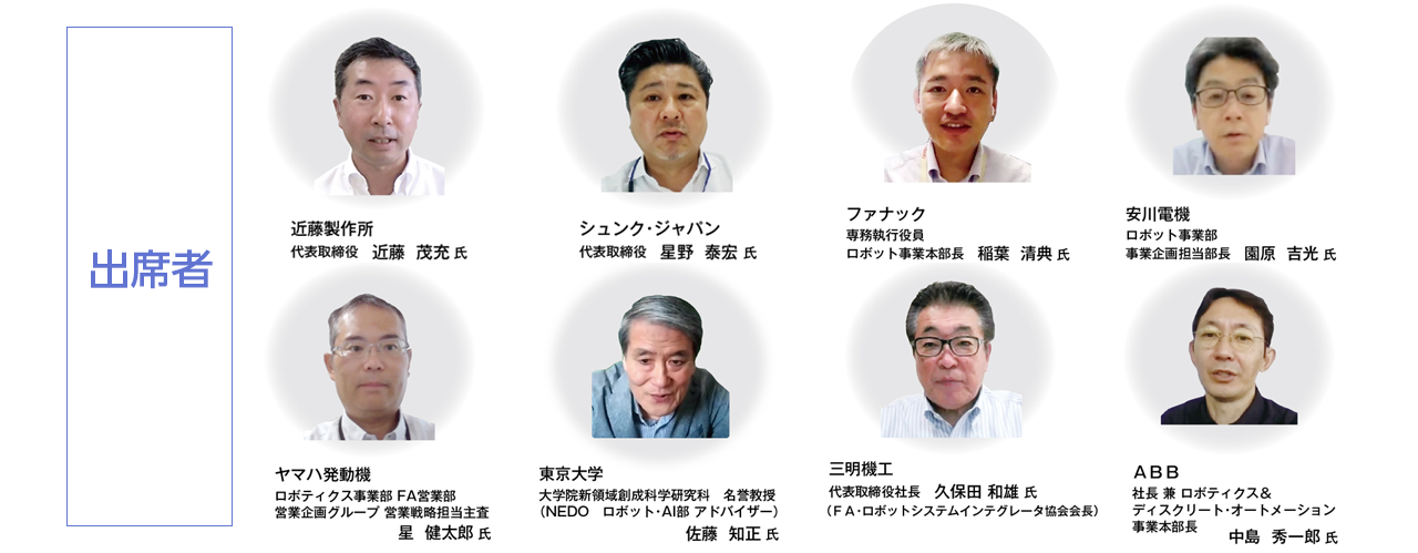 ■ 稲葉 一般的に自動化というと、大量生産、低価格、同品質などといった印象が強いです。その反面、人でしか作れないモノ、希少な技術を世に送り出すための役割も担っていると思います。そのためにはSIer、自動化周辺機器メーカーとの連携が重要です。製造インフラの必須要素にロボットを成長させ、モノづくりの明るい未来の実現に努めてゆきます。そして一人でも多くの方がロボットに興味を抱けるようにしたく思います。本座談会のいい記事を期待しています(笑)。